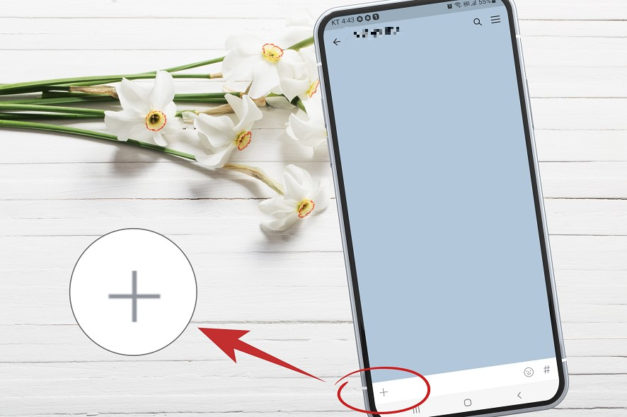 사진 전송을 위해 먼저 플러스 메뉴를 터치해 주세요.
