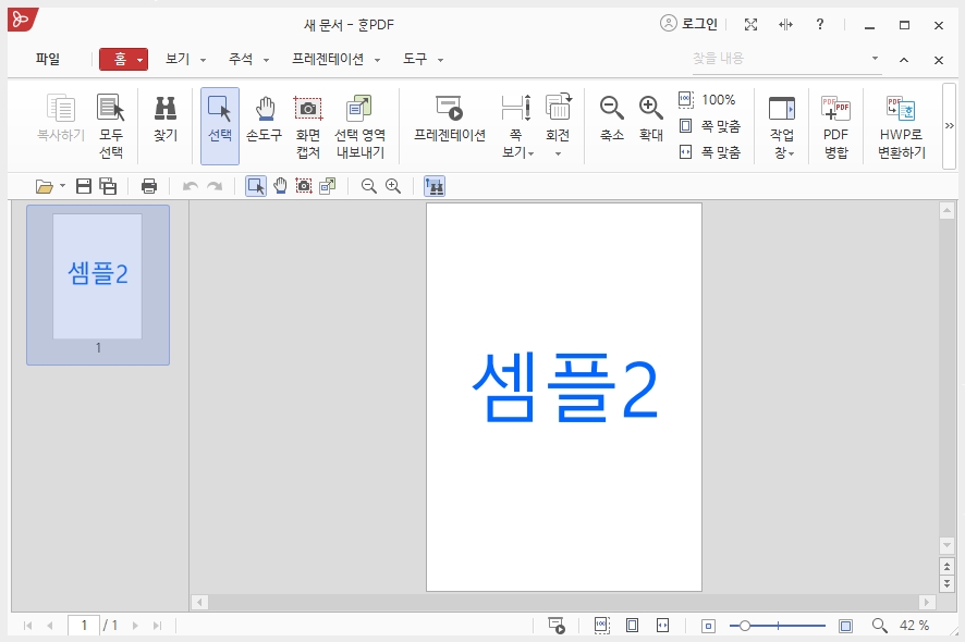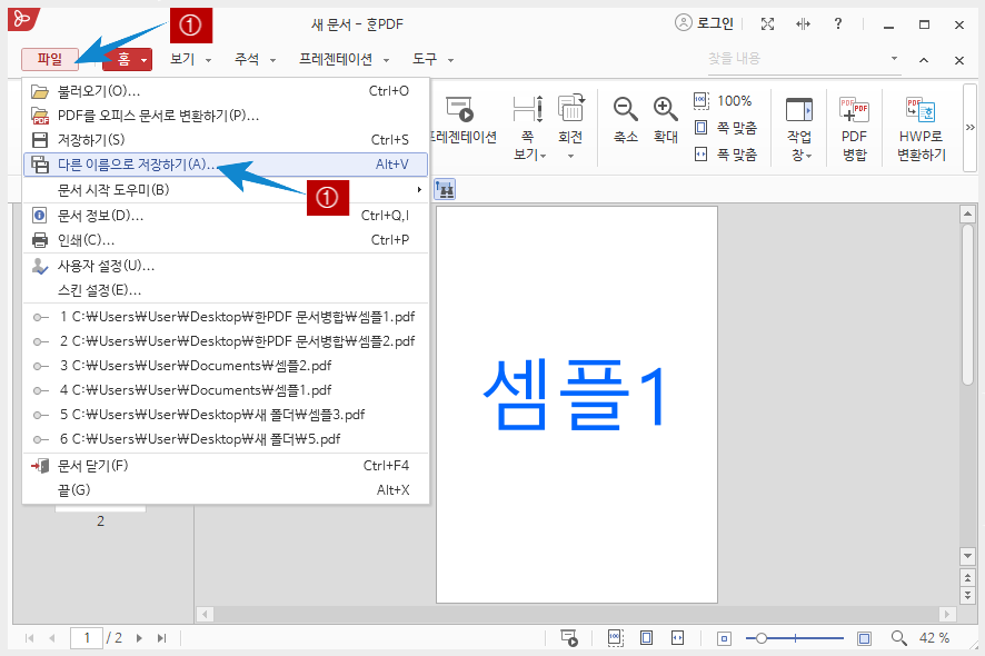 셈플1과 셈플2로 되어 있는 두 개의 PDF 문서를 합쳐 보겠습니다.