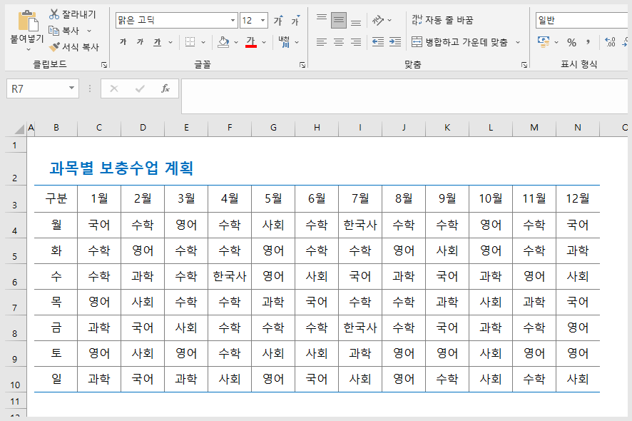 그러면 1월부터 6월까지의 국어 과목이 모두 수학으로 변경된 것을 확인할 수가 있습니다.