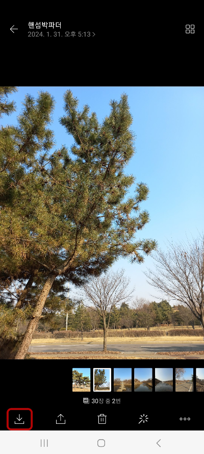 그리고 사진 다운로드 화면이 나오면 왼쪽하단의 <다운로드 아이콘>을 눌러주세요.
