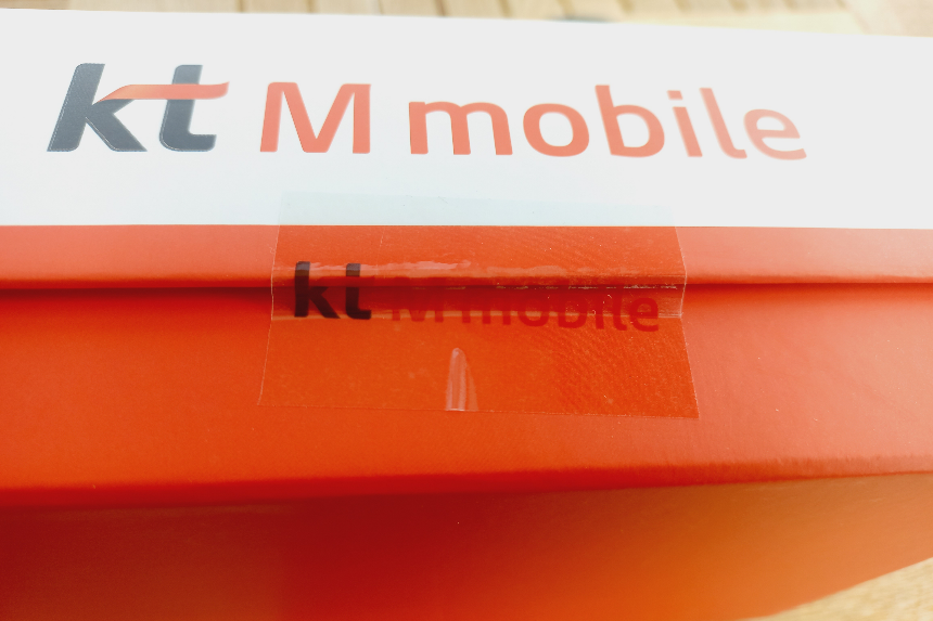 안전하게 배송될 수 있도록 핸드폰 박스는 꽤 두툼한 두께로 튼튼하게 제작되어 있고 박스 정면에 중고폰 다이렉트라고 쓰여있습니다. 박스 측면에는 검수가 끝난 핸드폰 박스를 개봉 못하도록 KT M 모바일 스티커가 붙어 있습니다.