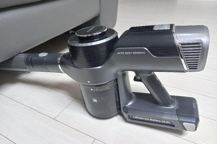 2,000mAh의 리튬이온 배터리를 탑재하고 있어 1단으로 사용 시 약 30분 정도 사용이 가능하였고, 30평대인 저희 집을 충분히 청소하고도 남을 배터리 양입니다.