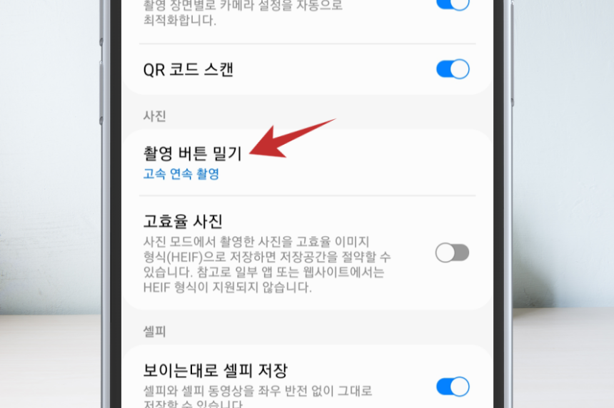 3. 촬영 버튼 밀기를 선택해 주세요.