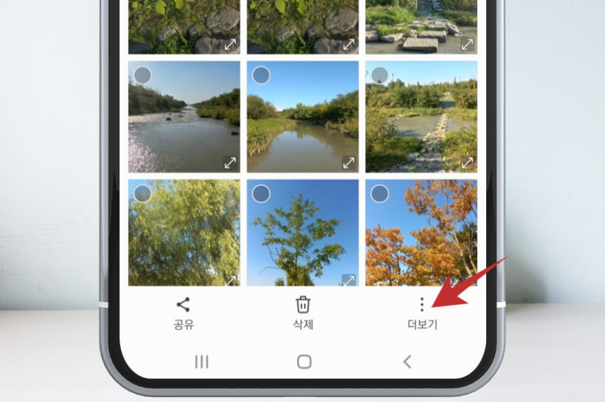 2. 갤러리 앱 화면에서 우측 상단의 점 3개를 선택합니다.