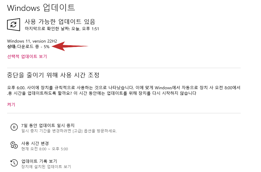 업데이트 아이콘 찾기 및 윈도우11 다운로드